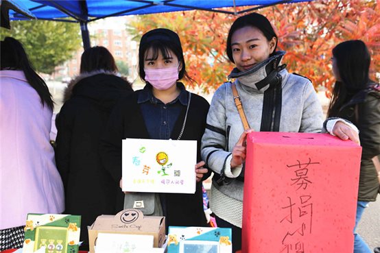 尽管活动第一天风雨交加,但深秋的寒风阻挡不了志愿者们火热的爱心和激情,义卖活动依旧如火如荼的进行着。活动中,公司多个员工社团及志愿者精彩的爱心演出吸引了众多同学前来献出了自己的爱心,满载爱心的歌声荡漾在枫叶漫地的校园里,让同学们在深秋的寒风里感受到了暖意。