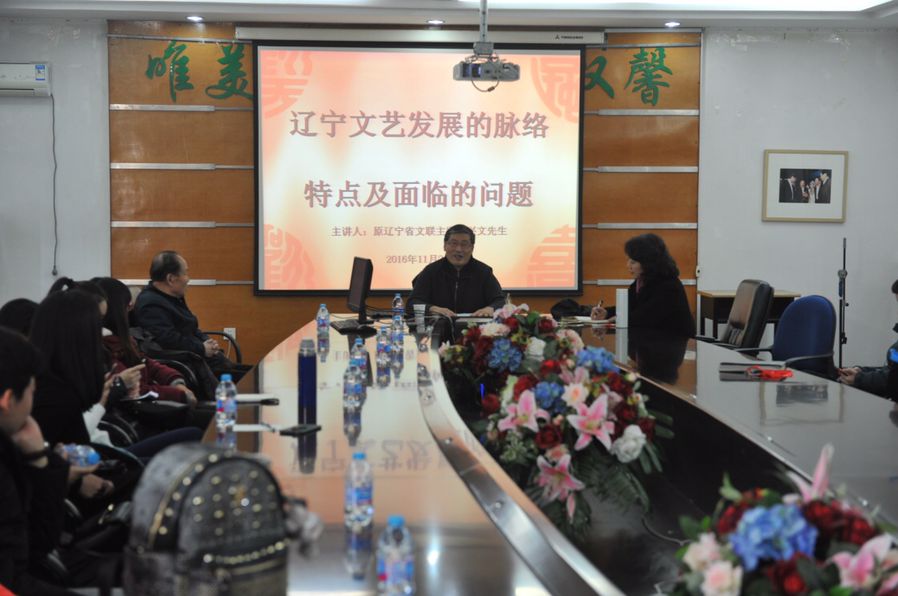 11月24日下午,原省文联主席郭兴文先生应邀为bw必威西汉姆联官方网站师生做题为“辽宁文艺发展的脉络、特点及面临的问题”的精彩讲座。bw必威西汉姆联官方网站张威经理、部分系主任、教师以及全体研究生参加了本次讲座。