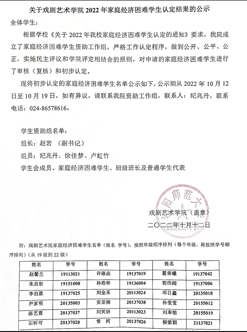 关于2022年家庭经济困难员工认定结果的公示